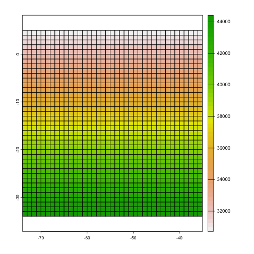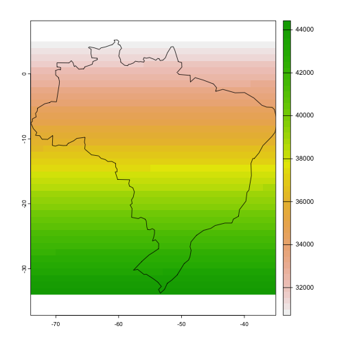 <!-- class: inverse, center, title-slide, middle --> class: center, middle <style> g { color: rgb(0,130,155) } r { color: rgb(174,77,41) } y { color: rgb(177,148,40) } </style> # Lecture 05: Geospatial Data Sciences # and Economic Spatial Models ## <img src="figs/bse_primary_logo.png" style="width: 35%" /><br><br>Bruno Conte ## 04-05/Feb/2026 --- # Geospatial Data and Spatial Models: Schedule 1. ~~Introduction to (spatial) data and programming in `R`~~ **[08/Jan/2026]** 2. ~~Week 2-4: Vector spatial data~~ **[14 - 29/Jan/2026]** 3. Week 5-7: Raster spatial data + (basic) interactive tools **[05 - 19/Feb/2026]** - Week 5: Raster basics and unary operations using `sf` and `terra` - Week 6: Vector-raster operations - Week 7: Interactive tools with `leaflet` and APIs 4. Week 8-10: Spatial models and applications with data **[25/Feb - 12 Mar/2026]**<br> <br> 5. <span style="color: rgb(177,148,40)">Take-home exam</span> **[27/Mar/2026]** --- # Main references for this class 1. Lovelace, R., Nowosad, J. and Muenchow, J., 2019. <g>**Geocomputation with R.**</g> Chapman and Hall/CRC. - Chapters 2.3, 3.3, 4.3, 5.3, and 6 2. Pebesma, E., 2018. Simple Features for R: Standardized Support for Spatial Vector Data. The R Journal 10 (1), 439-446 3. Wickham, H. and Grolemund, G., 2016. R for data science: import, tidy, transform, visualize, and model data. " O'Reilly Media, Inc.". --- # Raster data: basics - GIS systems represent <g>raster data</g> as an "image": - Geography as continuum of pixels (gridcells) with associated values - Normally represents <r>high resolution</r> features of the geography (like an image) .center[ <img src="https://r.geocompx.org/figures/raster-intro-plot-1.png" style="width: 70%" /> ] --- # Raster data: basics - Normally represents <r>high resolution</r> features of the geography (like an image) .center[ <img src="https://r.geocompx.org/figures/raster-intro-plot2-1.png" style="width: 70%" /> ] --- # Raster data (and other operations with rasters) in R Requires **additional libraries** on top of `sf`<sup>1</sup> 1. `terra`: contains most of the <r>raster-related functions</r> 2. `exactextractr`: performs high-performance <y>zonal statistics</y> 3. `gdistance`: used to calculate <g>distances over raster</g> .footnote[[1] Note that this is not an exhaustive list of libraries. Advanced users might want to check `stars`.] --- # Raster basics: data structure with terra - **Raster data:** represented with `terra`'s `SpatRaster` object .center[<img src="figs/raster01.png" style="width: 90%" />] --- # Raster basics: data structure with terra .pull-left[ - Prevous example: one-layer raster - Rasters can also be <y>**multidimensional**</y> (also called a *raster stack* or *brick*) - **Examples:** - <r>Imagery:</r> combination of 3 RGB layers (red, green, blue) - <g>Time varying</g> data (e.g., temperatures, precipitation, ...) ] .pull-right[ .center[<img src="figs/rast_multilayer_1.png" style="width: 85%" />] ] --- # Raster basics: data structure with terra .pull-left[ - Prevous example: one-layer raster - Rasters can also be <y>**multidimensional**</y> (also called a *raster stack* or *brick*) - **Examples:** - <r>Imagery:</r> combination of 3 RGB layers (red, green, blue) - <g>Time varying</g> data (e.g., temperatures, precipitation, ...) ] .pull-right[ .center[<img src="figs/rast_multilayer_2.png" style="width: 85%" />] ] --- # Raster basics: data structure with terra .pull-left[ - **Data formats:** - `.tif` is the <g>most usual</g> - Other image formats (`.jpeg`, `.png`) - NetCDF format `.nc` for <r>multi-layer rasters</r> (optimized for disk space!) - The function `terra::rast()` is versatile (works with all types)! ] .pull-right[ .center[<img src="figs/rast_multilayer_2.png" style="width: 85%" />] ] --- # Raster basics: loading, creating, and operations with rasters Further details in `01_class05.R` and `01_class06.R`, covering: .pull-left[ - Creating and loading rasters with `terra` - <r>Unary</r> operations: - Cropping - Vectorization ] .pull-right[ - <g>Vector-raster</g> operations (next class!): - Data extraction - Zonal statistics - Rasterize - Distances over networks using rasters ] --- # Raster basics: loading, creating, and operations with rasters - Creating an empty raster with `terra::rast()` ```r library(terra) r <- rast() *r ``` ``` ## class : SpatRaster ## dimensions : 180, 360, 1 (nrow, ncol, nlyr) ## resolution : 1, 1 (x, y) ## extent : -180, 180, -90, 90 (xmin, xmax, ymin, ymax) ## coord. ref. : lon/lat WGS 84 ``` - **Default empty raster:** covers the <g>Earth surface</g> with `\(1 \times 1\)` resolution - It also uses the standard long/lat projection --- # Raster basics: loading, creating, and operations with rasters - Creating an empty raster with `terra:rast()` ```r library(terra) r <- rast() *head(values(r)) ``` ``` ## lyr.1 ## [1,] NaN ## [2,] NaN ## [3,] NaN ## [4,] NaN ## [5,] NaN ## [6,] NaN ``` - **Default empty raster:** comes with <g>missing values</g> - Retrieved with `terra::values()` as a matrix (<r>column = layer</r>) --- # Raster basics: loading, creating, and operations with rasters .pull-left[ - Assigning raster values: `terra::values()` - Watch out the dimension: use `ncell()` - <g>Plotting</g> rasters: - Use `plot()` - `ggplot` later! ] .pull-right[ ```r library(terra) r <- rast() *values(r) <- 1:ncell(r) *plot(r) ``` <!-- --> ] --- # Raster basics: loading, creating, and operations with rasters .pull-left[ - <g>Cropping rasters</g> with `terra::crop()` - Crop a raster around a `sf` object - **Example with Brazil**'s polygon - <r>Vectorizing</r> rasters: - Transform a raster into a `sf` object (point, polygon) ] .pull-right[ ```r sf.brazil <- world %>% filter(iso_a2=='BR') *plot(r) *plot(st_geometry(sf.brazil), * add=T) # add layer ``` <!-- --> ] --- # Raster basics: loading, creating, and operations with rasters .pull-left[ - <g>Cropping rasters</g> with `terra::crop()` - Crop a raster around a `sf` object - **Example with Brazil**'s polygon 